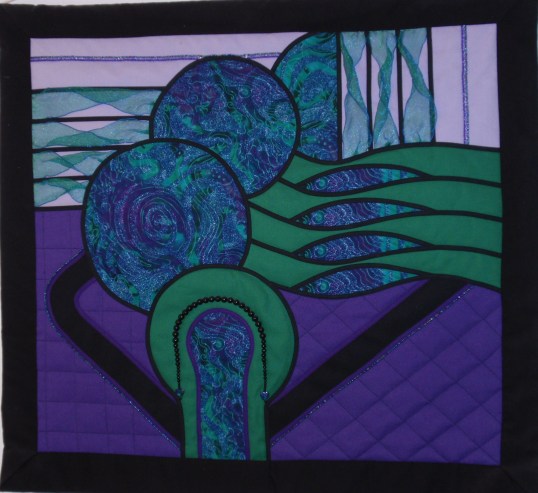 This is a guest post by my friend Sylvia Davis, a very creative quilt artist. She graciously agreed to undertake making something to hang on a wall in my living room. I love the resulting piece.